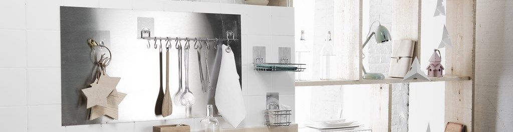 Um eine Küche perfekt in Ordnung zu halten, sollten Sie sich für das Compactor Aufbewahrungssystem für die Montage an der Wand entscheiden. Weder Schrauben noch Bohrer sind notwendig, entlastet die Arbeitsflächen und hilft Ihnen, alle Zutaten und Utensilien Reichweite zu halten.